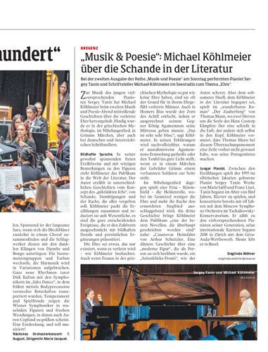 Bei der zweiten Ausgabe der Reihe „Musik und Poesie“ am Sonntag performten Pianist Sergey Tanin und Schriftsteller Michael Köhlmeier im Seestudio zum Thema „Ehre“.