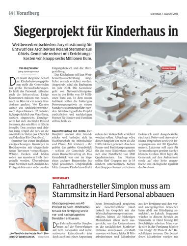 Wettbewerb entschieden: Jury einstimmig für Entwurf des Architekten Roland Stemmer aus Götzis. Gemeinde rechnet mit Errichtungskosten von knapp sechs Millionen Euro.
