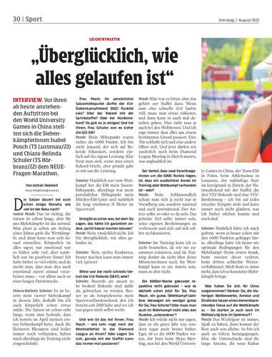 Interview. Vor ihren ab heute anstehenden Auftritten bei den World University Games in China stellten sich die Siebenkämpferinnen Isabel Posch (TS Lustenau/23) und Chiara-Belinda Schuler (TS Hörbranz/22) dem NEUE-Fragen-Marathon.