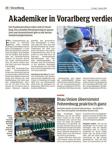 Ein Studienabschluss lohnt sich in Vorarlberg. Ein schneller Berufseinstieg ist garantiert und österreichweit gibt es die besten Verdientmöglichkeiten.