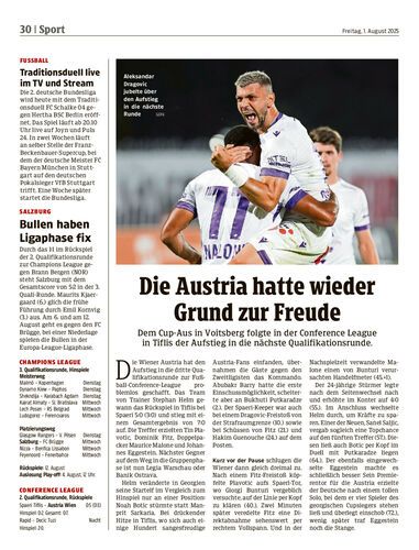 Austria Lustenau gastiert heute zum Auftakt der 2. Liga beim FC Liefering. Das Spiel in der Red-Bull-Arena, das um 18 Uhr beginnt, wird nach der Stadioneröffnung gegen Augsburg und dem Cupsieg bei Kuchl das nächste Kapitel des Neuanfangs der Grün-Weißen.