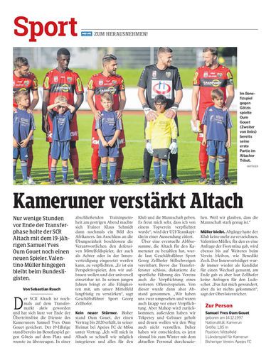 Nur wenige Stunden vor Ende der Transferphase holte der SCR Altach mit dem 19-jährigen Samuel Yves Oum Gouet noch einen neuen Spieler. Valentino Müller hingegen bleibt beim Bundesligisten.