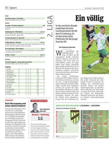 In der sechsten Runde empfängt Austria Lustenau heute (16.30) den FC Liefering. Es ist der erste echte Prüfstein für die junge Austria-Elf.