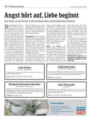Gery Keszler „w’ortwechselt“ mit Bischof Benno Elbs im Alten Hallenbad in Feldkirch.
