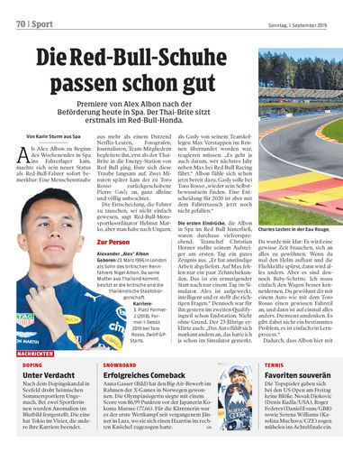 Premiere von Alex Albon nach der Beförderung heute in Spa. Der Thai-Brite sitzt erstmals im Red-Bull-Honda.