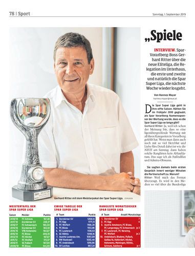 Interview. Spar-Vorarlberg-Boss Gerhard Ritter über die neue Eliteliga, die Relegation im Unterhaus, die erste und zweite und natürlich die Spar Super Liga, die nächste Woche wieder losgeht.