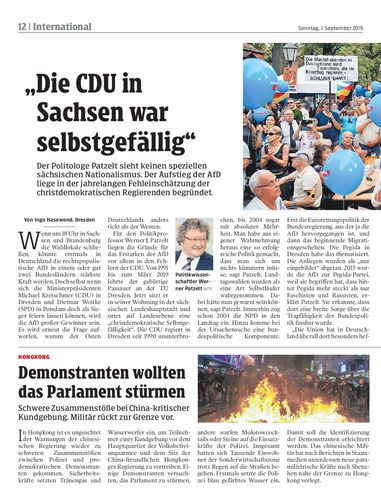 Der Politologe Patzelt sieht keinen speziellen sächsischen Nationalismus. Der Aufstieg der AfD liege in der jahrelangen Fehleinschätzung der christdemokratischen Regierenden begründet.