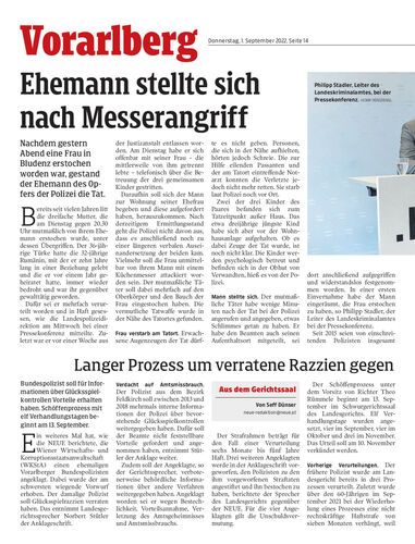 Nachdem gestern Abend eine Frau in Bludenz erstochen worden war, gestand der Ehemann des Opfers der Polizei die Tat.