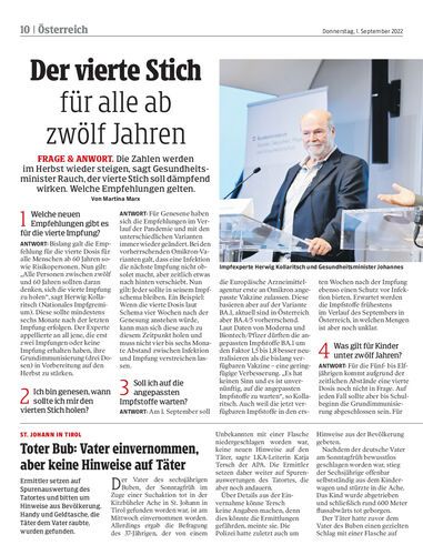 Frage & anwort. Die Zahlen werden im Herbst wieder steigen, sagt Gesundheits- minister Rauch, der vierte Stich soll dämpfend wirken. Welche Empfehlungen gelten. Von Martina Marx