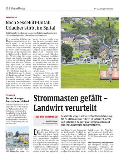 Geldstrafe wegen schwerer Sachbeschädigung, die zu Stromausfall führte: 61-Jähriger brachte laut Urteil mit Bagger zwei Strommasten auf seinem Grundstück zum Umstürzen.