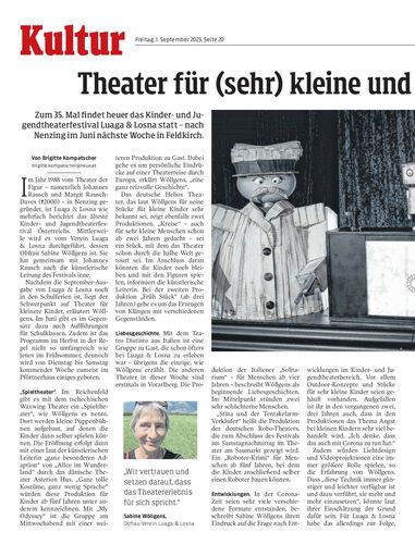 Zum 35. Mal findet heuer das Kinder- und Jugendtheaterfestival Luaga & Losna statt – nach Nenzing im Juni nächste Woche in Feldkirch.