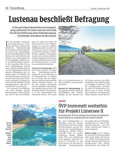 Die Volkspartei stellt im Landtag eine Anfrage zum geplanten Kraftwerksbau an Landeshauptmann Markus Wallner.