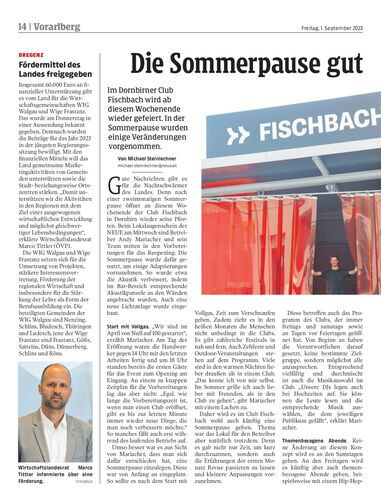 Im Dornbirner Club Fischbach wird ab diesem Wochenende wieder gefeiert. In der Sommerpause wurden einige Veränderungen vorgenommen.