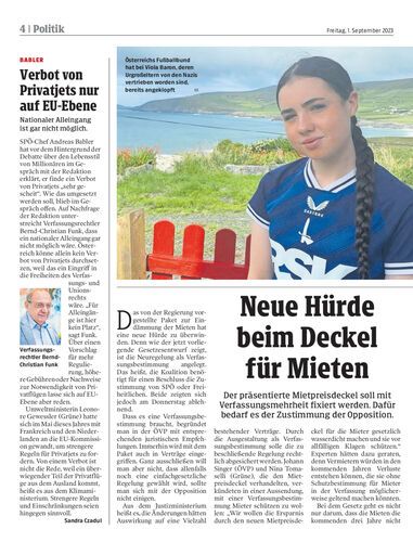 Der präsentierte Mietpreisdeckel soll mit Verfassungsmehrheit fixiert werden. Dafür bedarf es der Zustimmung der Opposition.