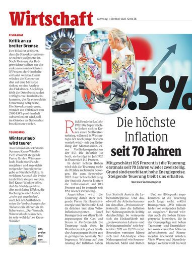 Mit geschätzt 10,5 Prozent ist die Teuerung erstmals seit 70 Jahren wieder zweistellig. Grund sind exorbitant hohe Energiepreise. Steigende Teuerung bleibt uns erhalten. Von Uwe Sommersguter