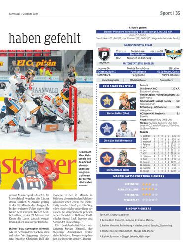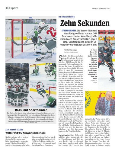 Spielbericht. Die Bemer Pioneers Vorarlberg verlieren vor nur 1364 Zuschauern in der Vorarlberghalle mit 2:3 nach Penaltyschießen gegen Linz. Den Sieg gaben sie zehn Sekunden vor dem Ende aus der Hand.