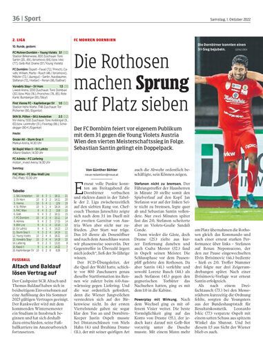 Der FC Dornbirn feiert vor eigenem Publikum mit dem 3:1 gegen die Young Violets Austria Wien den vierten Meisterschaftssieg in Folge. Sebastian Santin gelingt ein Doppelpack.