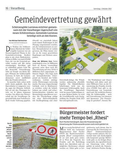 Schützengilde Lustenau errichtet gemeinsam mit der Vorarlberger Jägerschaft ein neues Schützenhaus. Gemeinde Lustenau beteiligt sich an den Kosten.