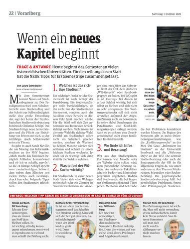 Frage & Antwort. Heute beginnt das Semester an vielen österreichischen Universitäten. Für den reibungslosen Start hat die NEUE Tipps für Erstsemestrige zusammengefasst.