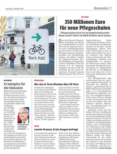 Pflegeschulen jetzt fix im Regelschulsystem: Bund schafft Platz für 8000 Schüler, Boni locken.
