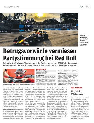 Beim Großen Preis von Singapur sorgt die Budgetobergrenze 2021 für Diskussionen. Red Bull und Aston Martin sollen diese überschritten haben, die Folgen sind offen.