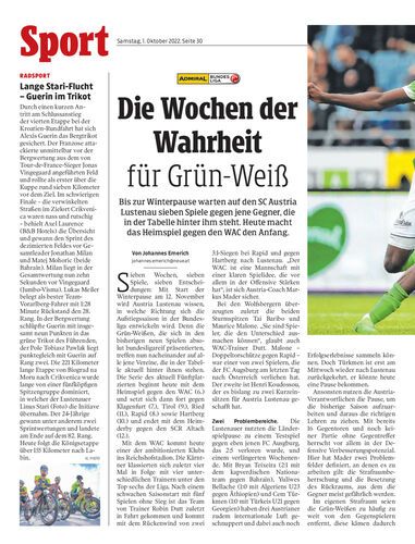 Bis zur Winterpause warten auf den SC Austria Lustenau sieben Spiele gegen jene Gegner, die in der Tabelle hinter ihm steht. Heute macht das Heimspiel gegen den WAC den Anfang.