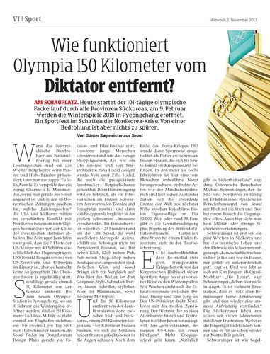 Am Schauplatz. Heute startet der 101-tägige olympische Fackellauf durch alle Provinzen Südkoreas, am 9. Februar werden die Winterspiele 2018 in Pyeongchang eröffnet. Ein Sportfest im Schatten der Nordkorea-Krise. Von einer Bedrohung ist aber nichts zu spüren. Von Günter Sagmeister aus Seoul