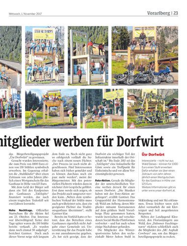 In Wald am Arlberg soll das Traditionsgasthaus „Tafelspitz“ wiederbelebt werden. Die originelle Werbeaktion „Üsr Dorfwürt“ zieht weite Kreise.