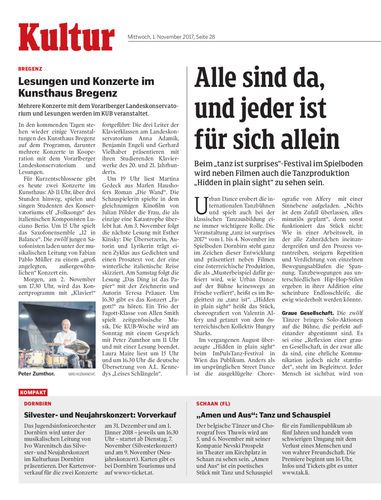Beim „tanz ist surprises“-Festival im Spielboden wird neben Filmen auch die Tanzproduktion „Hidden in plain sight“ zu sehen sein.