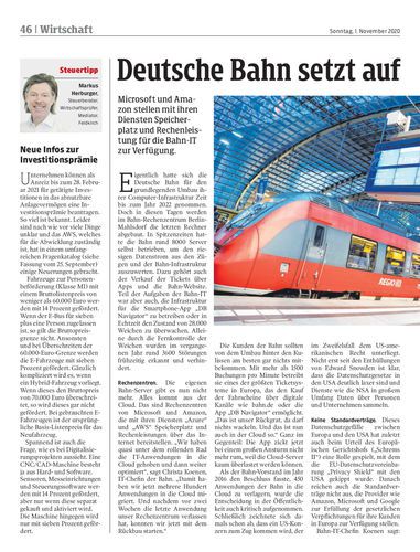 Microsoft und Amazon stellen mit ihren Diensten Speicherplatz und Rechenleistung für die Bahn-IT zur Verfügung.