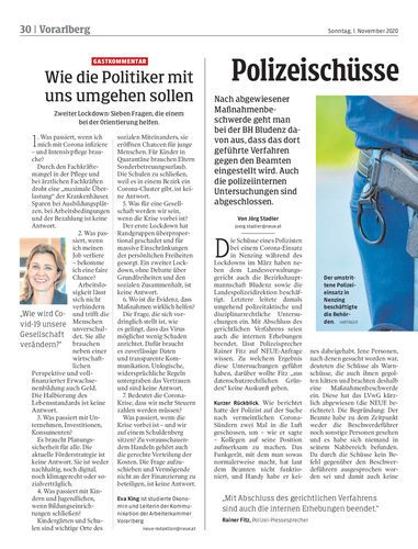 Drastische Massnahmen. Wie der zweite Lockdown unser Leben verändern wird, wie die Regierung Schäden von Unternehmen abwenden will und wie Betroffene auf das Paket reagieren. Seiten 2–7, 10 Reuters