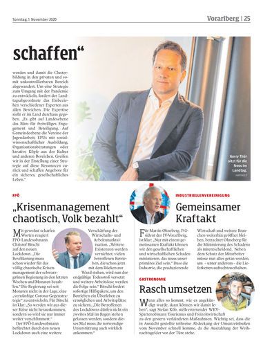 Interview. Landeshauptmann Markus Wallner spricht im Interview über die Gründe für den Lockdown, die Kontrolle der Ausgangssperre und die hohe Verschuldung durch die Hilfspakete.