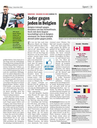 Belgien kämpft gegen Kroatien um das Achtelfinale. Doch mit dem Gegner beschäftigt sich in Belgien niemand, im Team kämpft derzeit jeder gegen jeden.