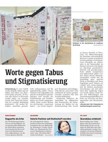 Bis 7. Dezember macht „Die rote Linie“ im Foyer des Landhauses in Bregenz auf sexualisierte Gewalt an Frauen aufmerksam.