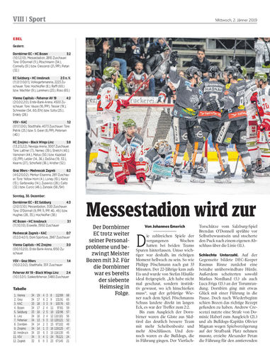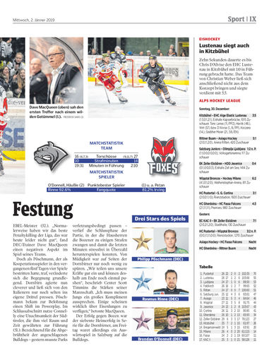 Der Dornbirner EC trotz weiter seiner Personalprobleme und bezwingt Meister Bozen mit 3:2. Für die Dornbirner war es bereits der siebente Heimsieg in Folge.