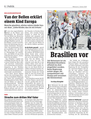 Jair Bolsonaro ist als Präsident Brasiliens offiziell ins Amt eingeführt worden. Seine Regierung schürt Angst. Sie sympathisiert mit Trump und verachtet die Ureinwohner.