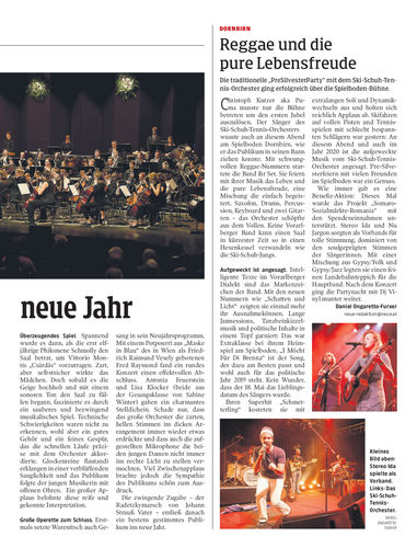 Die traditionelle „PreSilvesterParty“ mit dem Ski-Schuh-Tennis-Orchester ging erfolgreich über die Spielboden-Bühne.