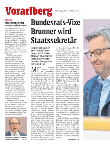 Politisches Spitzenamt für den Vorarlberger VP-Politiker Magnus Brunner (47) im Ministerium für Umwelt, Energie und Infrastruktur.