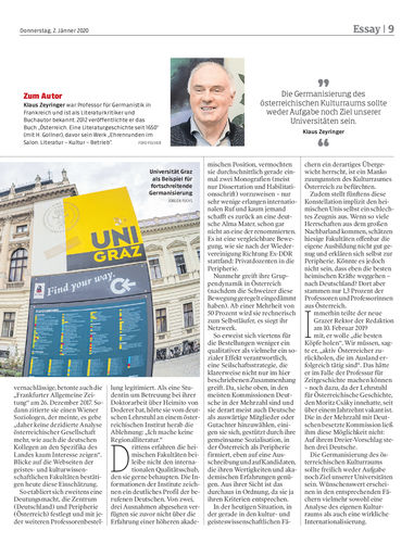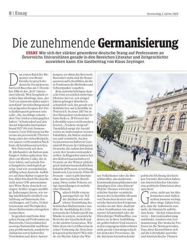 ESSAY. Wie sich der stärker gewordene deutsche Drang auf Professuren an Österreichs Universitäten gerade in den Bereichen Literatur und Zeitgeschichte auswirken kann. Ein Gastbeitrag von Klaus Zeyringer.