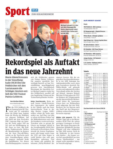 Heute Abend kreuzen in der Vorarlberghalle (19.30 Uhr) die Feldkircher mit den Lustenauern die Schläger. Gestern entließ die VEU Trainer Patrice Lefebvre.