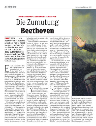ESSAY. 2020 ist ein Beethoven-Jahr. Seine Musik ist heute nicht weniger modern als vor 200 Jahren, weil sie das Publikum dazu auffordert, Stellung zu beziehen. Wie kann man auf so eine Zumutung reagieren? Von Martin Gasser