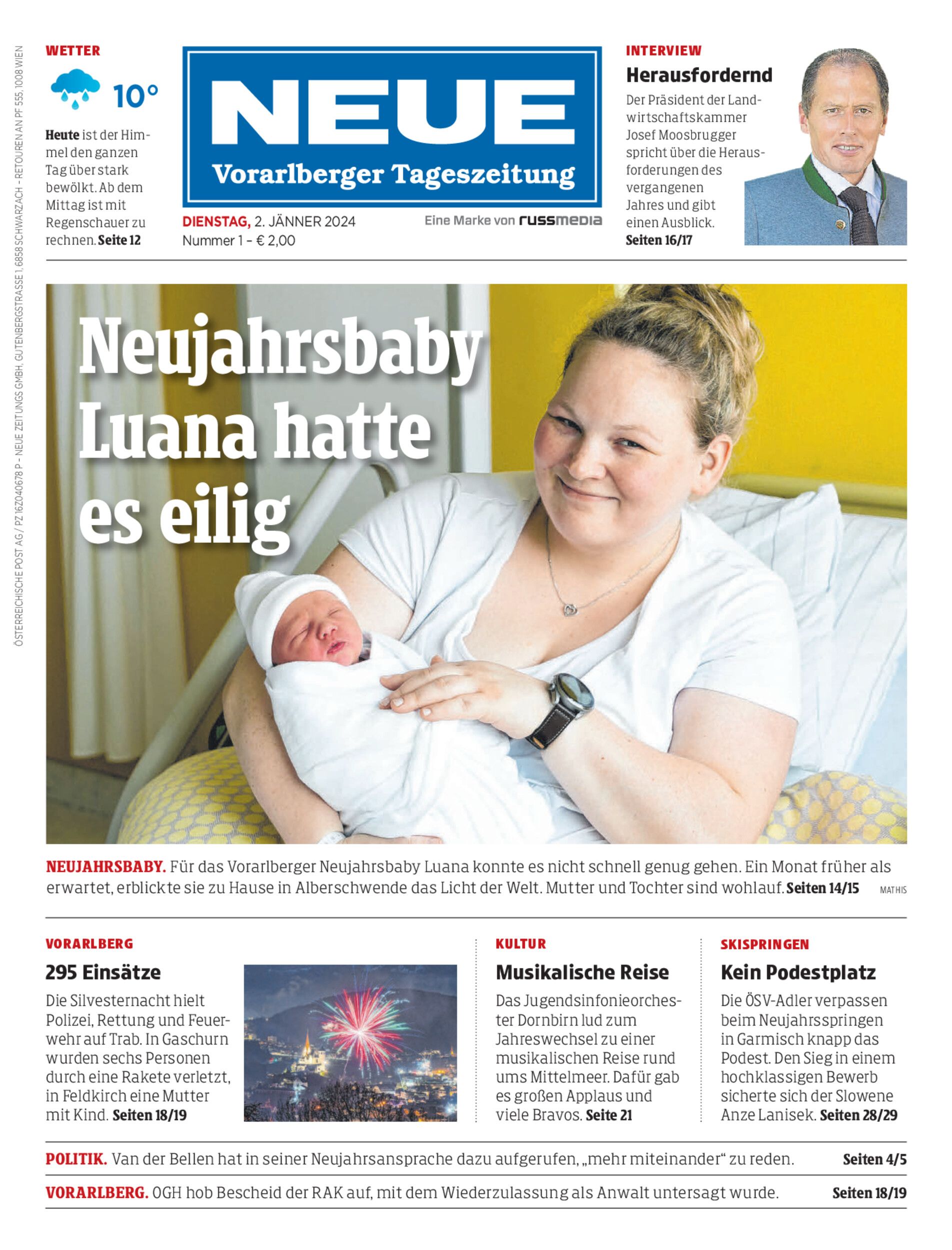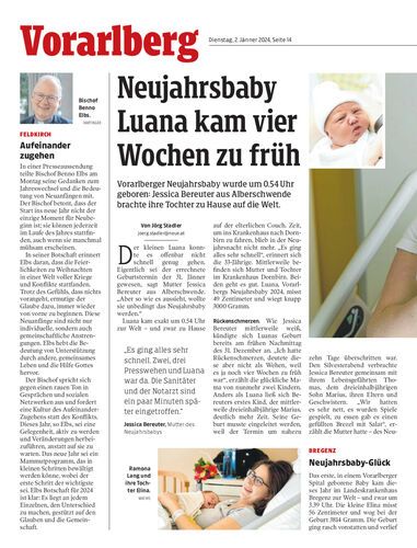 Neujahrsbaby-Glück im Landeskrankenhaus Bregenz