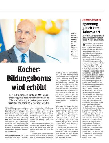 Der Bildungsbonus für beim AMS als arbeitslos gemeldete Personen soll nun ab 2024 als „Schulungszuschlag neu“ unbefristet verlängert und ausgebaut werden.