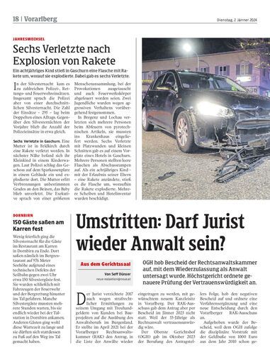 Ein achtjähriges Kind stieß in Gaschurn eine Flasche mit Rakete um, worauf sie explodierte. Dabei gab es sechs Verletzte.