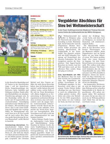 In der Team-Staffel gewinnt der Bludenzer Thomas Steu mit Lorenz Koller die Goldmedaille bei der WM in Königssee.