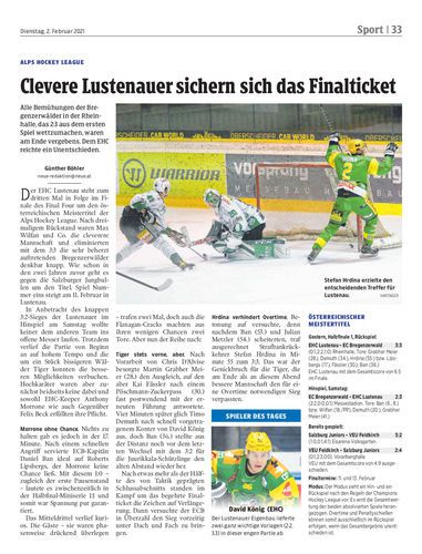 Alle Bemühungen der Bregenzerwälder in der Rheinhalle, das 2:3 aus dem ersten Spiel wettzumachen, waren am Ende vergebens. Dem EHC reichte ein Unentschieden.