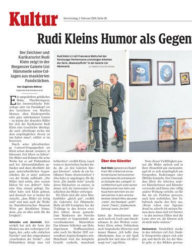 Der Zeichner und Karikaturist Rudi Klein zeigt in der Bregenzer Galerie Lisi Hämmerle seine Collagen aus maskierten Fundstücken.