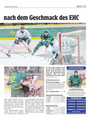 Ein Spieltag nach dem Geschmack des EHC