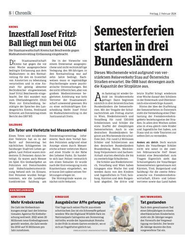 Inzestfall Josef Fritzl: Ball liegt nun bei OLG