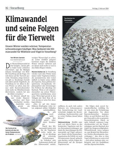 Unsere Winter werden wärmer, Temperaturschwankungen häufiger. Was bedeutet der Klimawandel für Wildtiere und Vögel in Vorarlberg?
